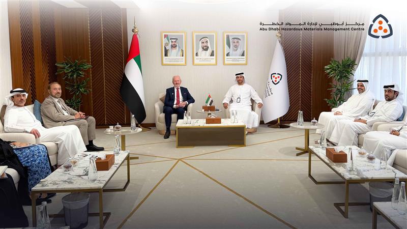 H.E. Khalfan Abdullah Al Mansoori, Acting Director General of Abu Dhabi Hazardous Materials Management Centre, welcomed a delegation from the Federal Authority for Nuclear Regulation, headed by H.E. Christer Viktorsson, Director General of the Authority, at the Centre’s headquarters in the Emirate of Abu Dhabi. The visit aimed to enhance cooperation and exchange expertise in the areas of regulation, legislation, and data related to the handling of hazardous materials.